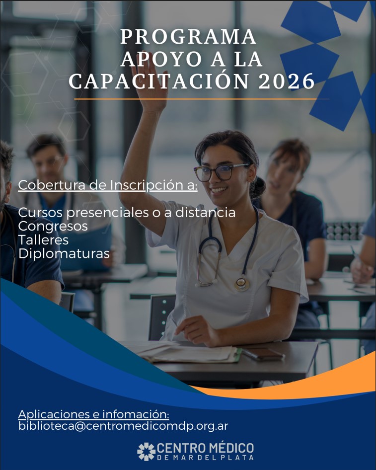 - Las personas que accedan al beneficio del Programa de Capacitación, se comprometen a contribuir con la Revista Medicina Académica del Centro Médico de Mar del Plata.