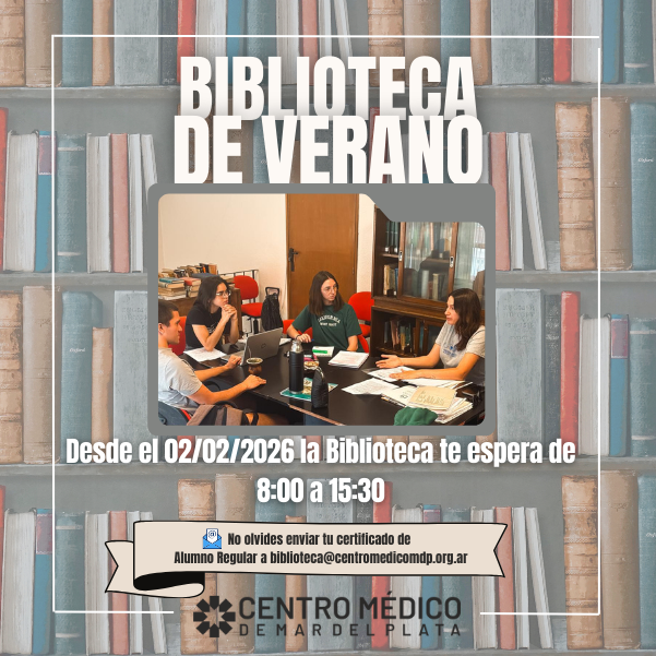 La Biblioteca del Centro Médico de Mar del Plata busca la excelencia a través de servicios bibliotecarios innovadores. Gestiona y produce información y conocimiento científico a fin de mejorar el cuidado de la salud. Difunde información ágil, precisa y oportuna, hacia aquellos que investigan, toman decisiones y realizan docencia o actualización médica.